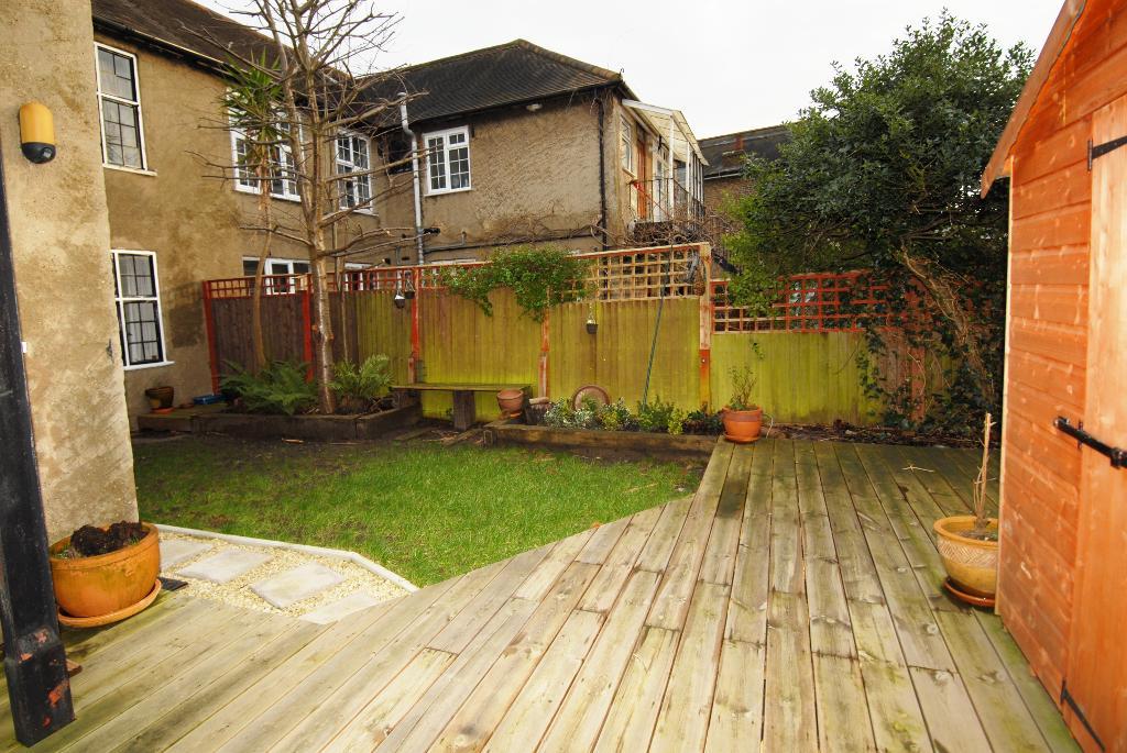 A ground floor maisonette with three double bedrooms (two with fitted wardrobes), good sized living room with feature fire place, modern tiled bathroom with bath and shower, fully fitted kitchen with door to beautiful sunny landscaped garden with raised decked dining area and large shed. Great décor, high ceilings, parquet wood floors, lots of storage and 3 mins to Wimbledon Chase station and 10 mins to Wimbledon town centre.