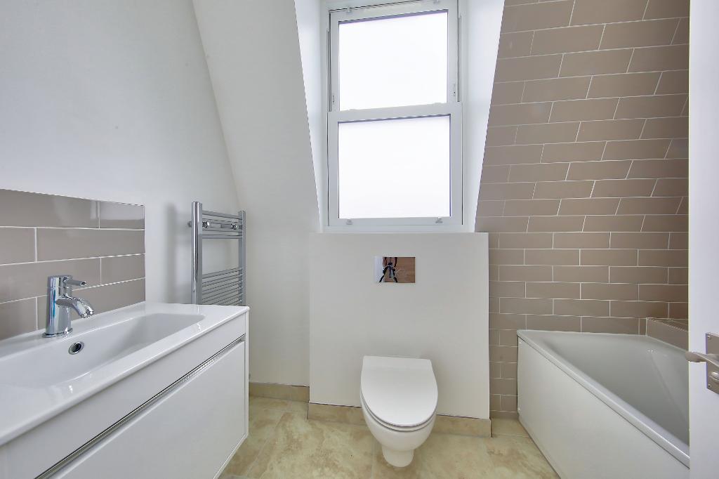 A refurbished conversion flat arranged over the second and third floors. The property has an open-plan living room/kitchen, master double bedroom with ensuite shower room, second double bedroom and modern family bathroom. Finished to a high specification with neutral decor throughout. Off-street parking space. No smokers or pets permitted. Offered Furnished and available first week of March!
