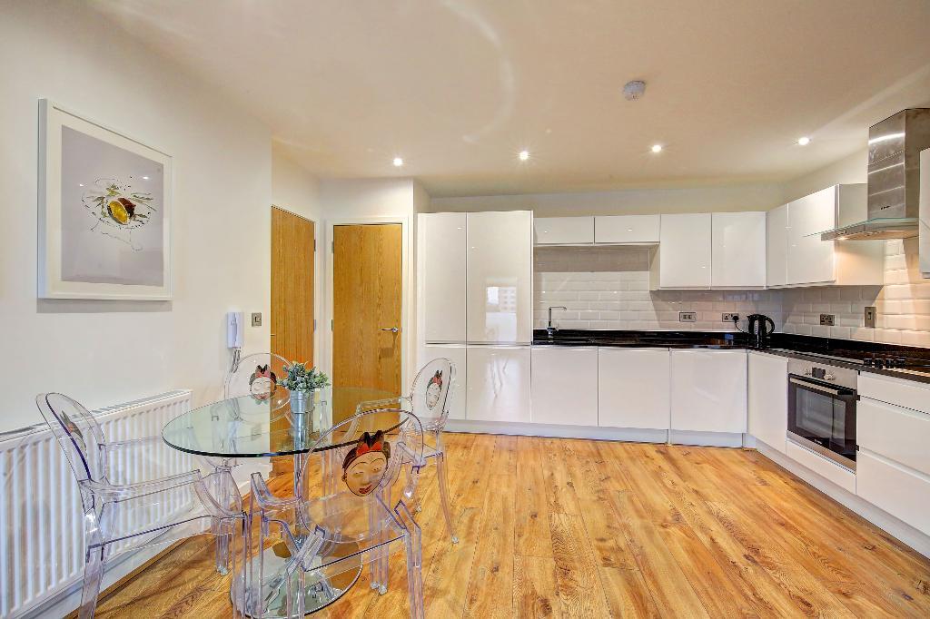 Stunning apartment situated on the fifth floor of this modern development with lift access and secure entryphone system. The property offers an open-plan kitchen with integrated appliances / living room, balcony with great views, two double bedrooms with fitted wardrobes and large modern tiled bathroom with shower over bath. Wooden floors throughout. Fully furnished to very high standard including 40" flat screen television including .