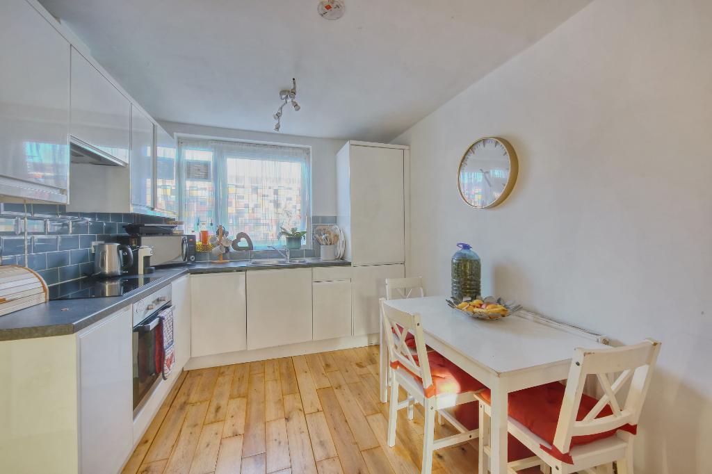 Two bedroom purpose built, raised ground floor flat with open plan living/kitchen/diner, two bedrooms, modern bathroom with utility area and modern kitchen with integrated appliances including dishwasher, wooden floors. Wandsworth council tax band C.