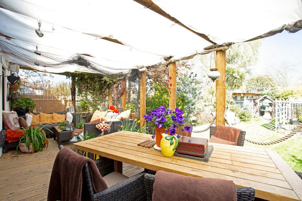 Full width bi-fold doors open onto a superb covered decked terrace, thoughtfully designed as an outdoor living room. Complete with heating, seating and dining space, it provides the perfect setting for year-round entertaining.