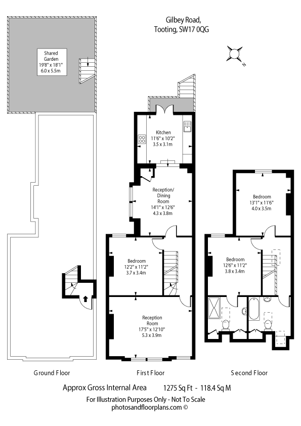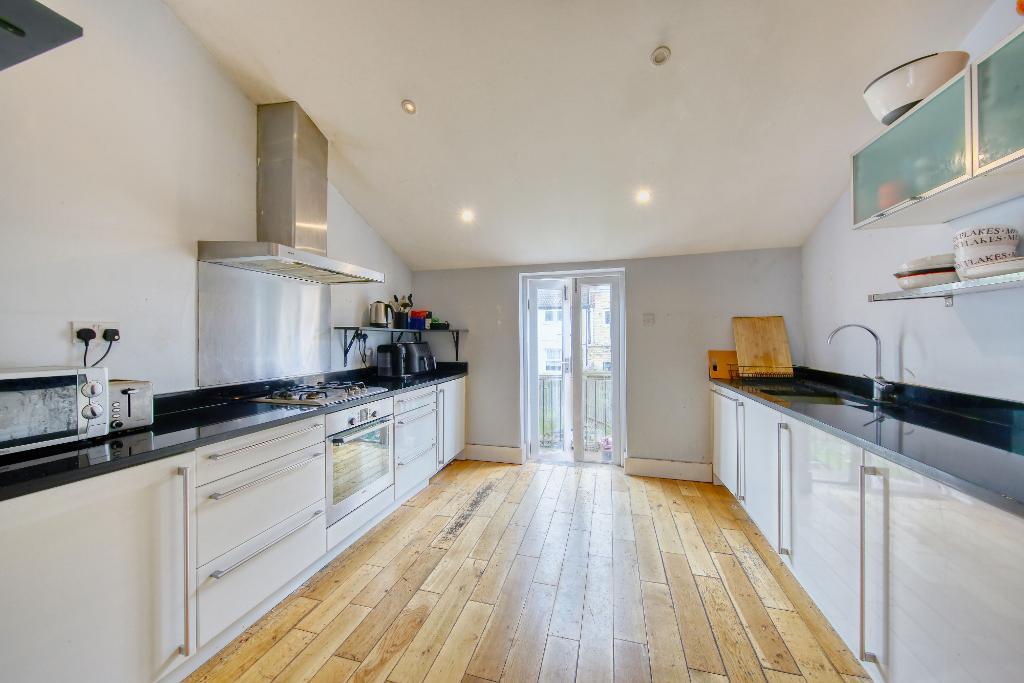 A substantial four-bedroom split-level period conversion offering bright, versatile accommodation of approximately 1,275 sq ft. Arranged over the upper floors of an attractive Victorian property, the flat features a large reception room, separate dining area, modern fitted kitchen, two bath/shower rooms and four well-proportioned bedrooms, including two in the loft level. Further benefits include good natural light throughout and access to a shared rear garden.