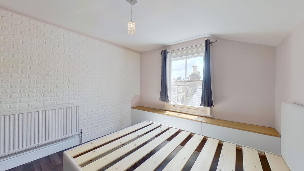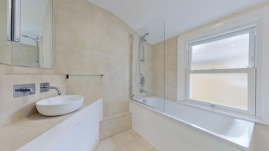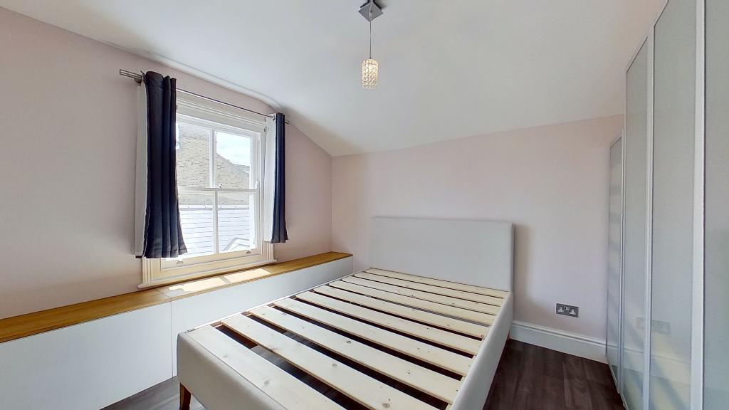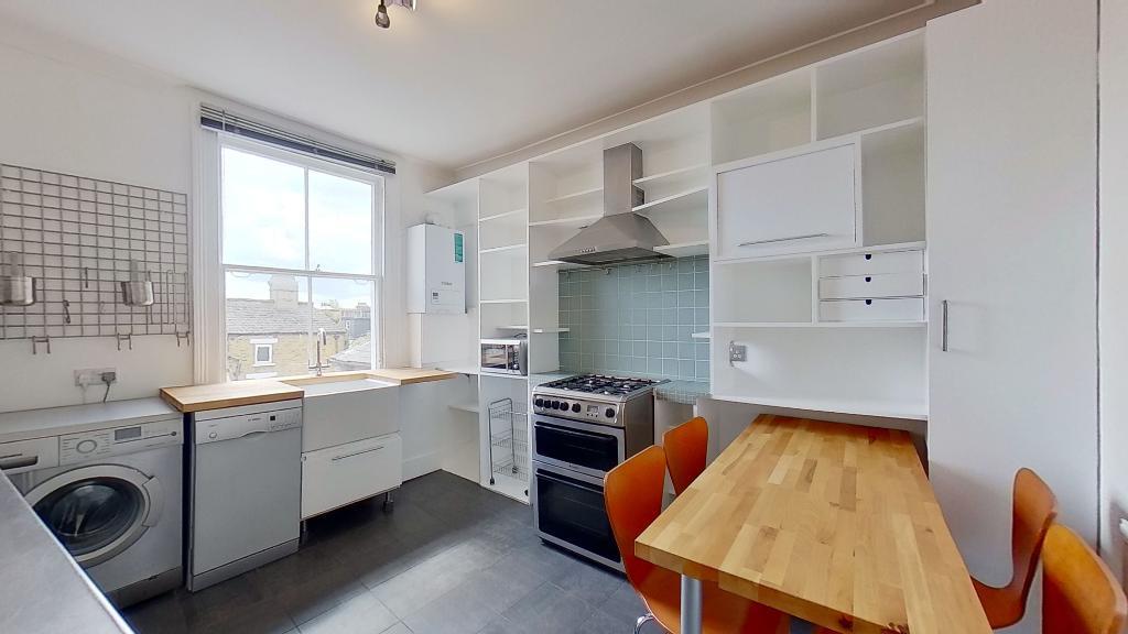A second floor split level conversion flat with good size living room, double bedroom with large wardrobes, modern tiled bathroom with bath and power shower, fully fitted shaker style eat in kitchen including dishwasher, study area, wood floors and neutral décor. Close to bars and restaurants and short walk to Clapham North Underground station. Offered furnished and available 6th June.