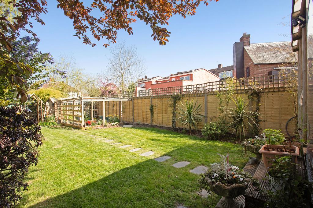 The rear garden extends to approximately 70ft and is mainly laid to lawn, complemented by mature planting, raised vegetable beds and useful outbuildings, including a gym and storage shed.