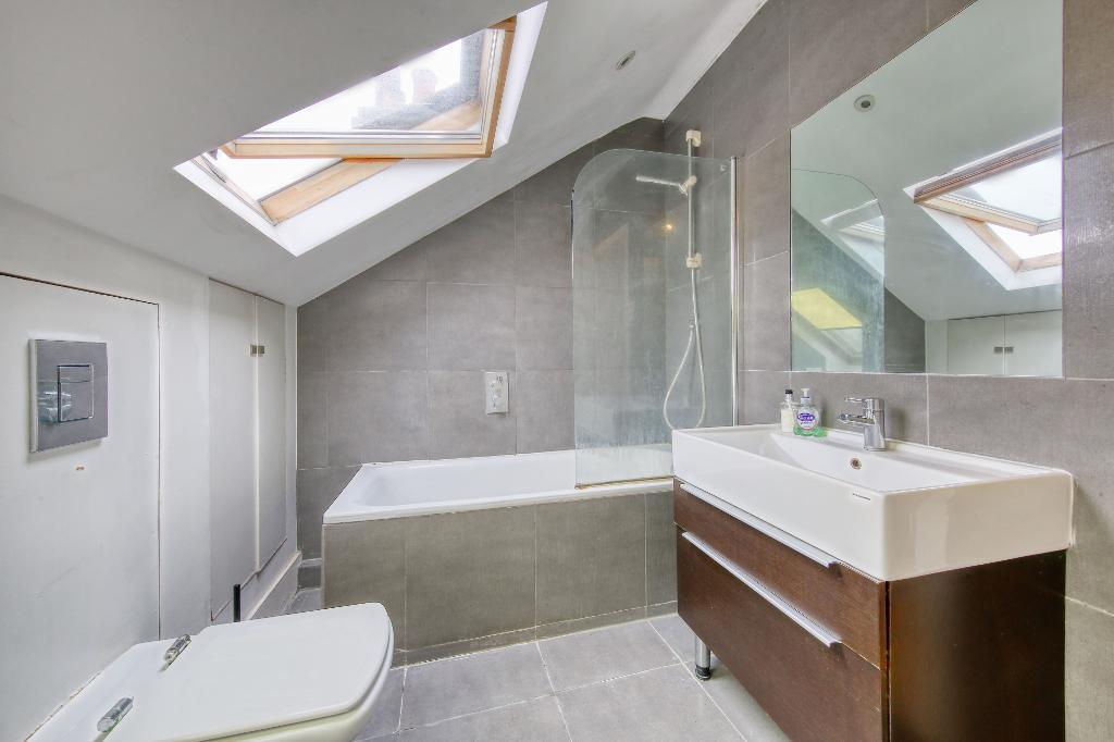 A substantial four-bedroom split-level period conversion offering bright, versatile accommodation of approximately 1,275 sq ft. Arranged over the upper floors of an attractive Victorian property, the flat features a large reception room, separate dining area, modern fitted kitchen, two bath/shower rooms and four well-proportioned bedrooms, including two in the loft level. Further benefits include good natural light throughout and access to a shared rear garden.